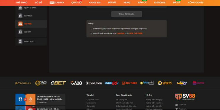 SV88 là một trong những nhà cái trực tuyến uy tín hàng đầu hiện nay với hệ thống nạp – rút tiền an toàn, nhanh chóng và minh bạch. Tuy nhiên, trong quá trình sử dụng, đôi khi người chơi có thể gặp phải sự cố khi rút tiền. Đừng lo lắng! Bài viết dưới đây sẽ hướng dẫn bạn cách xử lý lỗi rút tiền tại SV88 một cách nhanh chóng và đơn giản nhất.