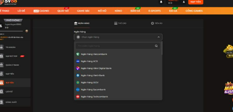 - Tên tài khoản ngân hàng trùng khớp với tên người đăng ký SV88.