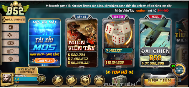 B52Club mang đến hàng chục trò chơi hấp dẫn, nhưng dưới đây là những cái tên được đánh giá là “hot nhất” hiện nay dựa trên lượt chơi và đánh giá tích cực từ cộng đồng.
